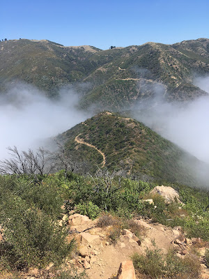 I was grateful it was a cool day with a thick marine layer. There's almost no shade on this trail and it can get quite warm on sunny days. After Wednesday's hike, I was mentally prepared for it to be difficult--even though I knew we were "ready" for it. This hike is two miles shorter than what we did on Day 3, but with an additional 430 feet in total elevation. We've hiked the first miles of this trail basically every weekend for at least a year, so I know the route well: where the soil is loose. Where I'm going to wait and get a drink because a better view is coming just a little ahead. I also know the long incline where I'm going to have to regularly stop and let the circulatory system in my right leg catch up on getting oxygen where it needs to go. It's so strange to have the two sides of my body not match up in their ability to function under effort. On the one hand, I'm constantly reminded of my weakness. On the other, every regathered step is a cause for gratitude.